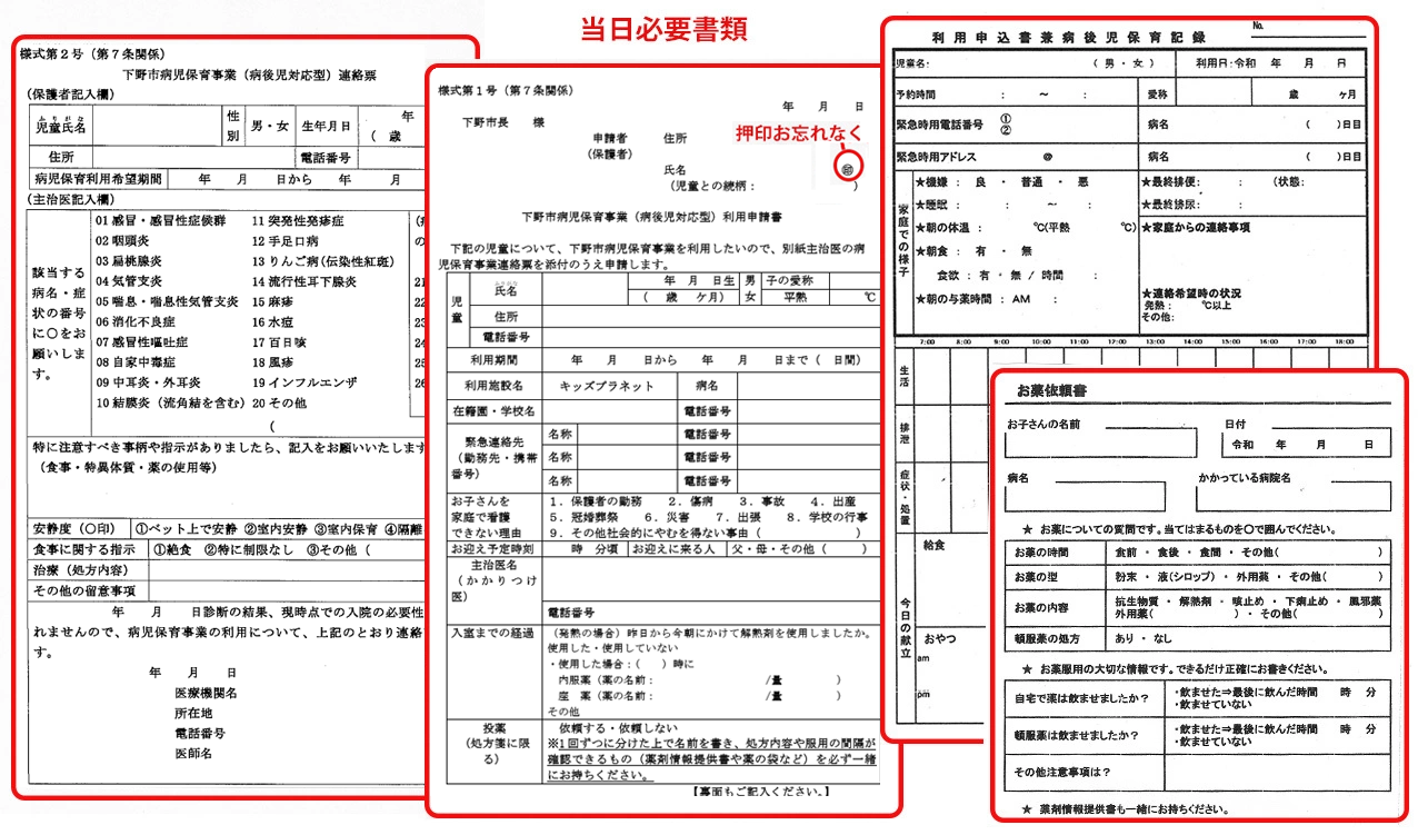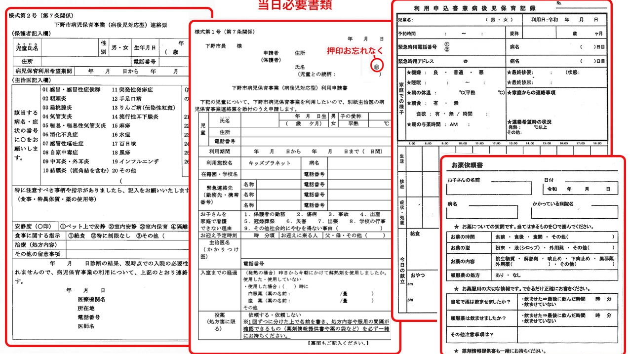 <提出書類> ・下野市病児保育事業(病後児対応型)利用申請書(要 押印)